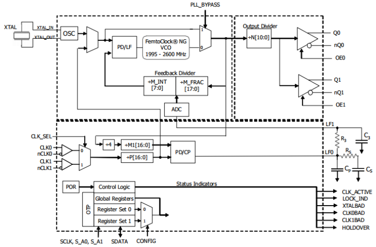 - Two differential inputs support the following input types:LVPECL, LVDS, LVHSTL, HCSL