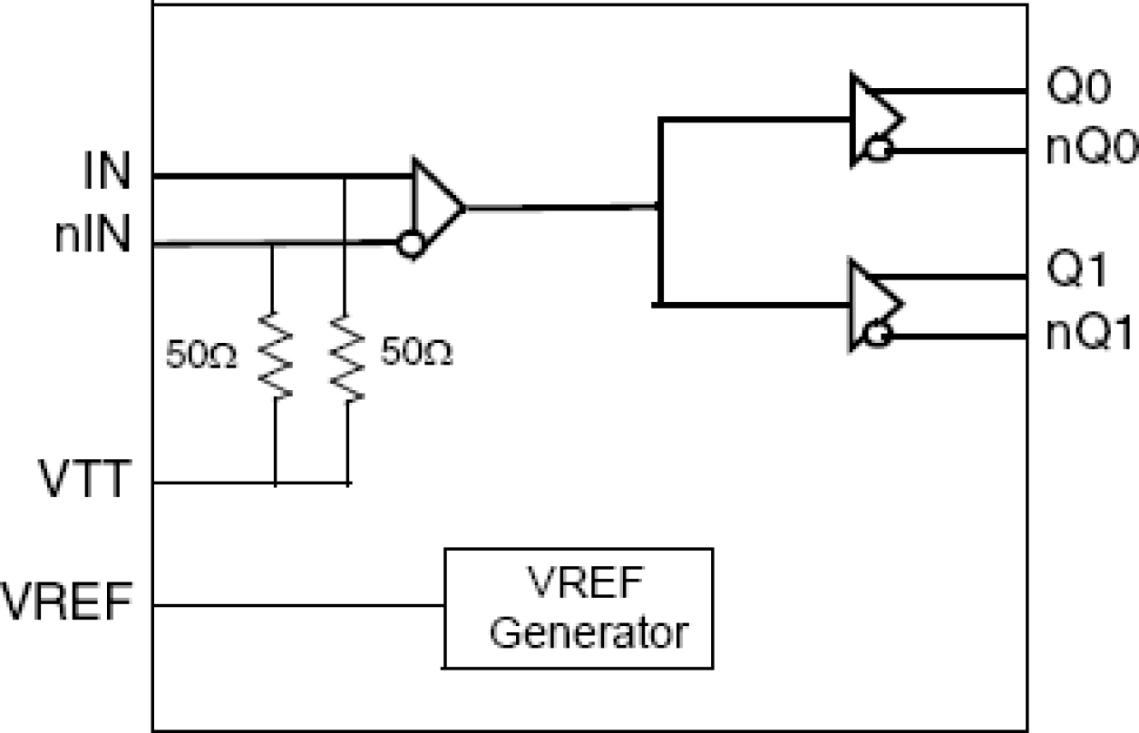 - 1:2 differential clock/data fanout buffer