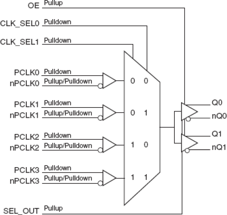 - Four selectable differential PCLKx, nPCLKx input pairs