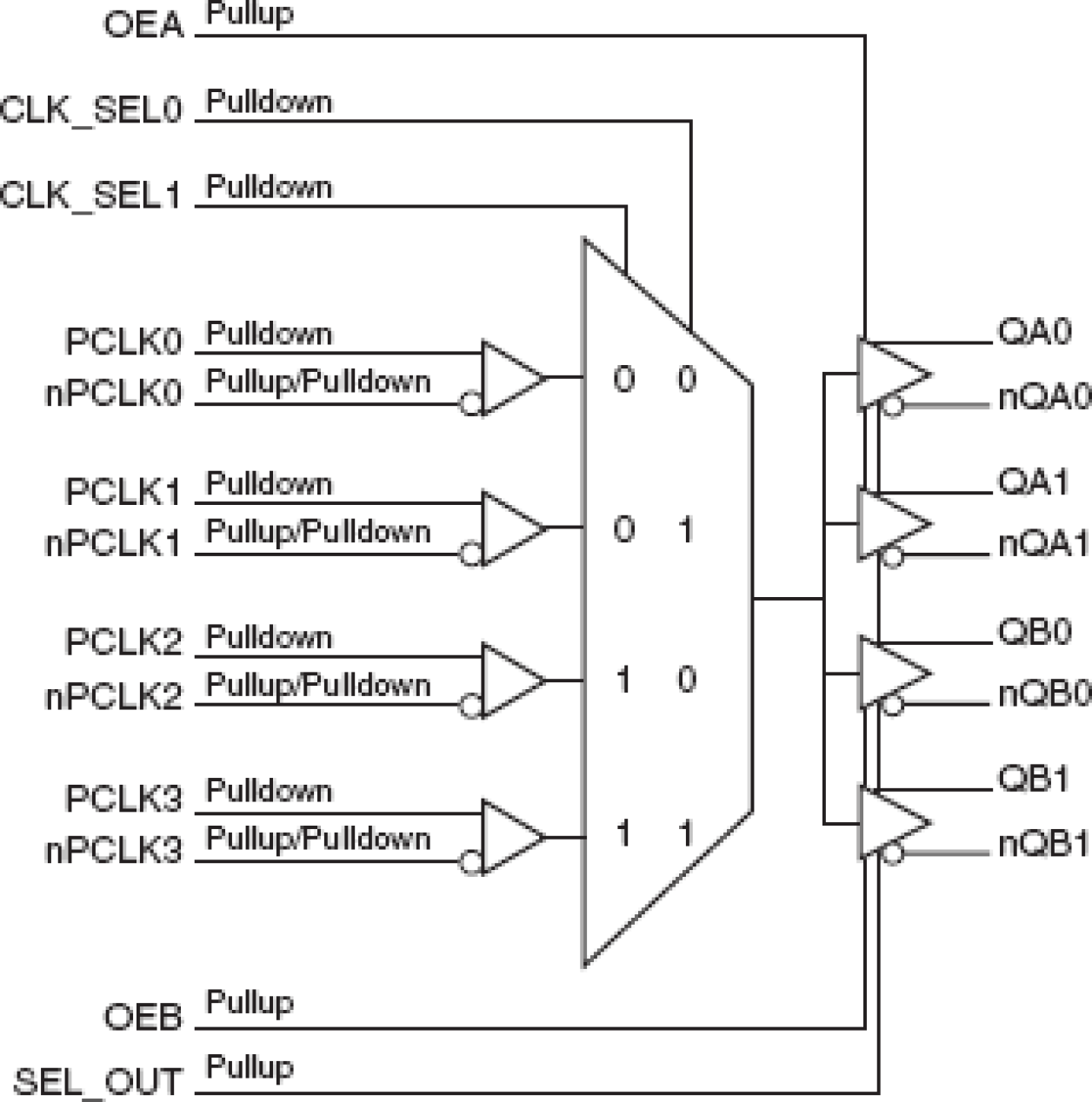 - Four selectable differential PCLKx, nPCLKx input pairs