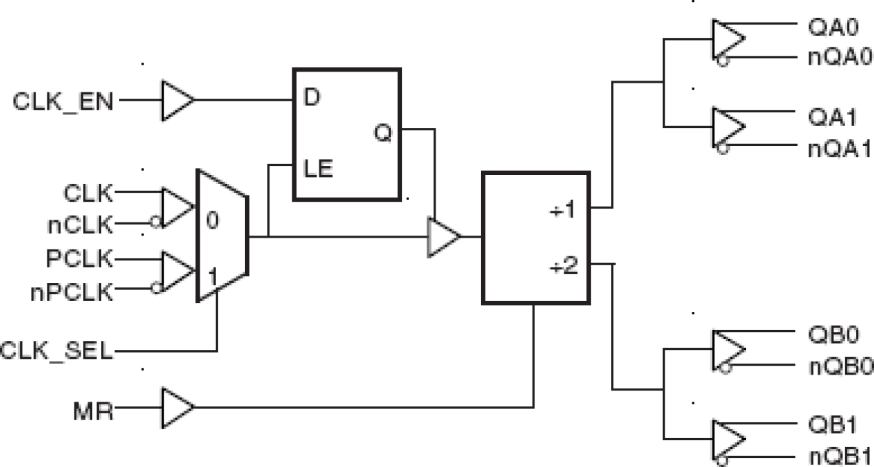 - Two divide by 2 differential 3.3V LVPECL outputs