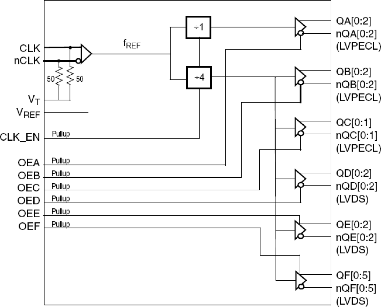 - Maximum output frequency: 162.5MHz (÷4 outputs)