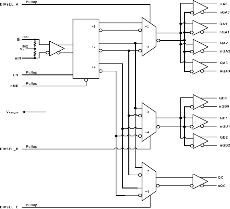 - INx, nINx inputs can accept the following differential input levels: LVPECL, LVDS, CML