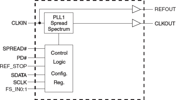 - ICS91719 focuses on the lower input frequency range of 14.318 to 80.00 MHz with a spread modulation of 20kHz to 40kHz.