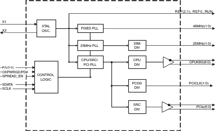 - 3 - 14.318 MHz REF clocks including 1 free-running