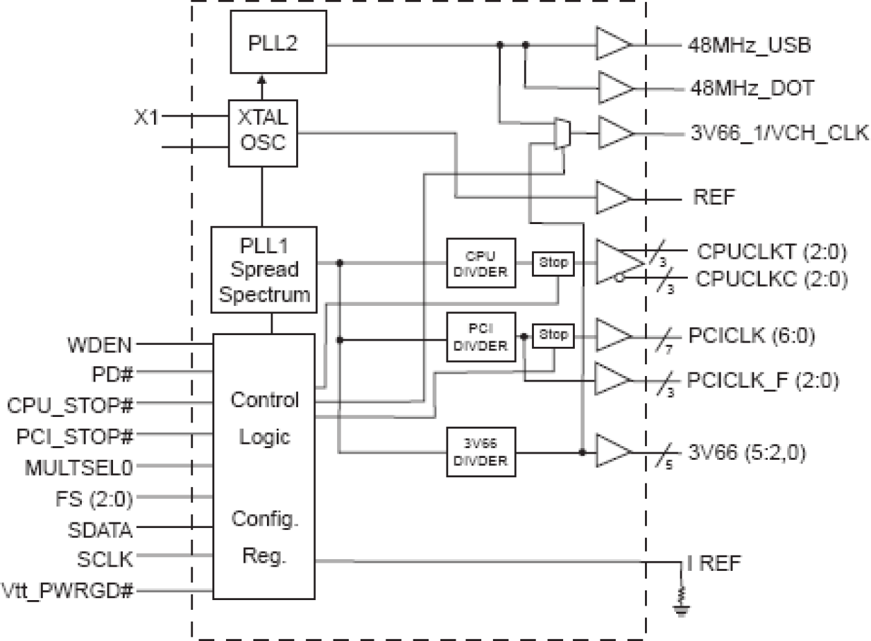 - 1 REF (3.3V) @ 14.318MHz