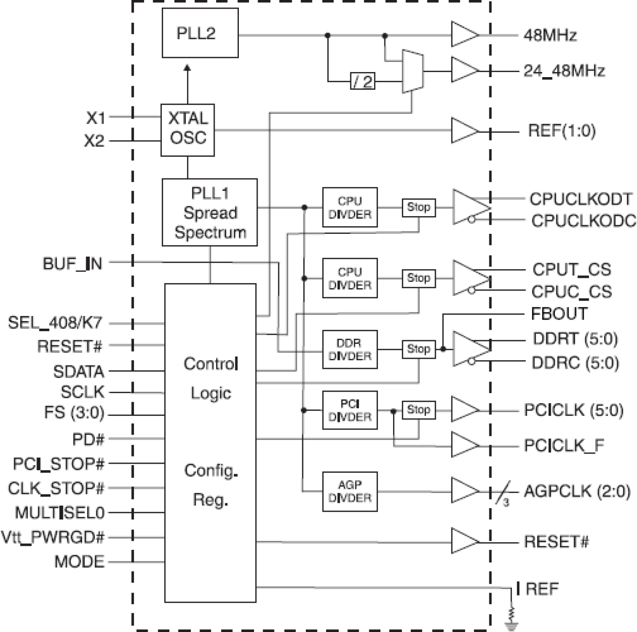 - 1 - Pair of differential CPU clocks @ 3.3V (CK408)/ 1 - Pair of differential open drain CPU clocks (K7)