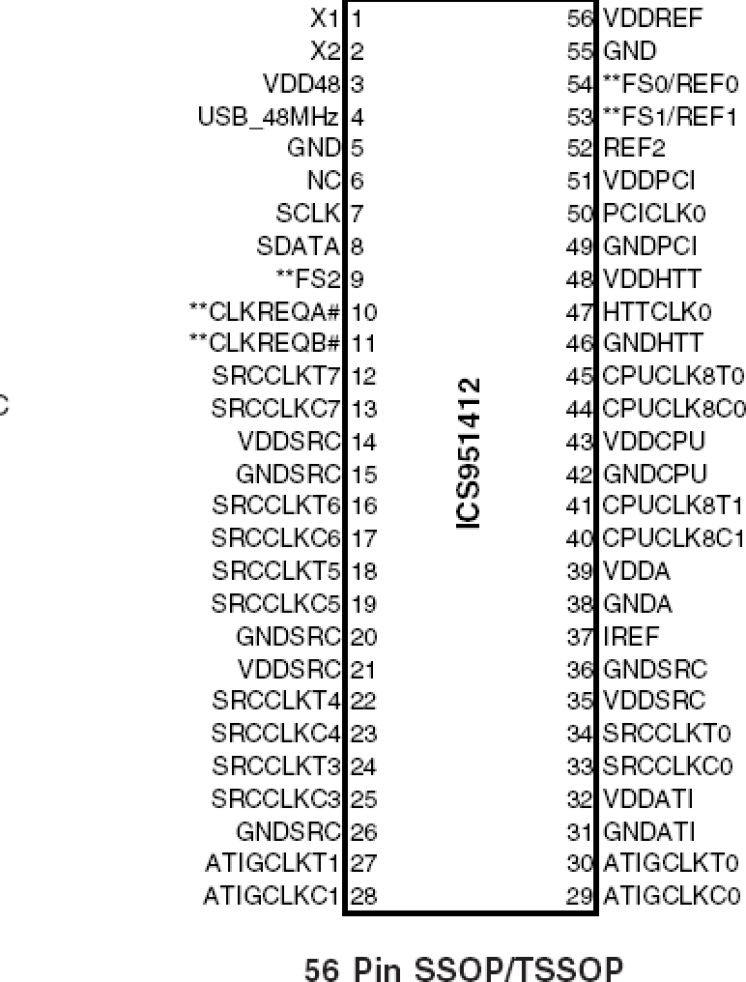 The 951412 is a main clock synthesizer chip that provides all clocks required for ATI RS480-based systems. An SMBus interface allows full control of the device.
