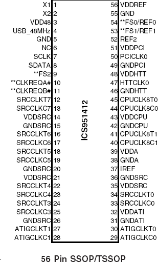 The 951412B is a main clock synthesizer chip that provides all clocks required for ATI RS480-based systems. An SMBus interface allows full control of the device.