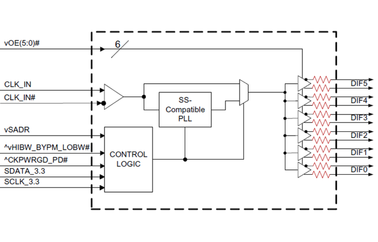 The 9DBV0641 6-output 1.8V PCIe fanout clock buffer is a member of Renesas' very-low power PCIe family. It has integrated output terminations providing Zo = 100Ω for direct connection to 100Ω transmission lines. The device has six output enable pins for clock management and three selectable SMBus addresses.