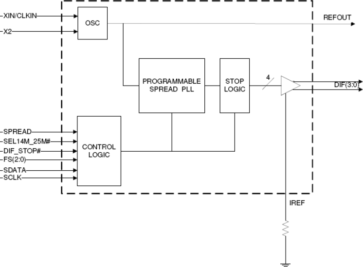 The 9FG430 is a Frequency Timing Generator that provides 4 HCSL differential output pairs. These outputs support PCI-Express Gen3, and QPI applications. The part supports Spread Spectrum and synthesizes several additional output frequencies from either a 14.31818 MHz crystal, a 25 MHz crystal or reference input clock. The 9FG430 also outputs a copy of the reference clock. Complete control of the device is available via strapping pins or via the SMBus interface.