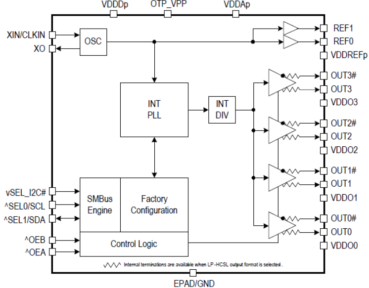 - 4 programmable output pairs plus 2 LVCMOS REF outputs