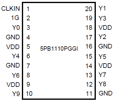 The 5PB1110 is a high-performance 1:10 LVCMOS clock buffer that offers a best-in-class additive phase jitter of 50fs RMS. This clock buffer also supports an Output Enable function. It is available in 20-pin QFN and TSSOP packages and can operate from a 1.8V to 3.3V supply.