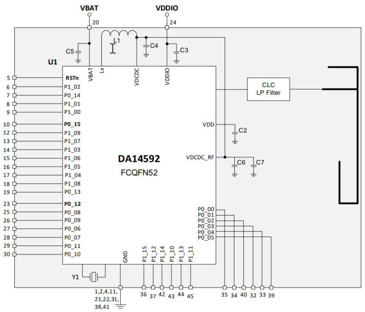 DA14592 是一款多核无线微控制器,将最新的 Arm® Cortex-M33®™ 应用处理器与浮点单元、高级电源管理功能、加密安全引擎、模拟和数字外设以及软件可配置的协议引擎与符合蓝牙 5.2 低功耗标准的无线电相结合。 它包括 256kB 的嵌入式闪存和 96kB 的 RAM。