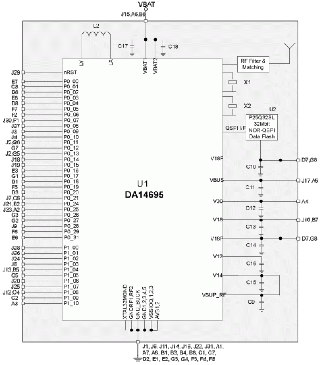 | External Rails and Load Capacity | 1x 3V @ 150mA, 3x 1.8V @ 50mA each |