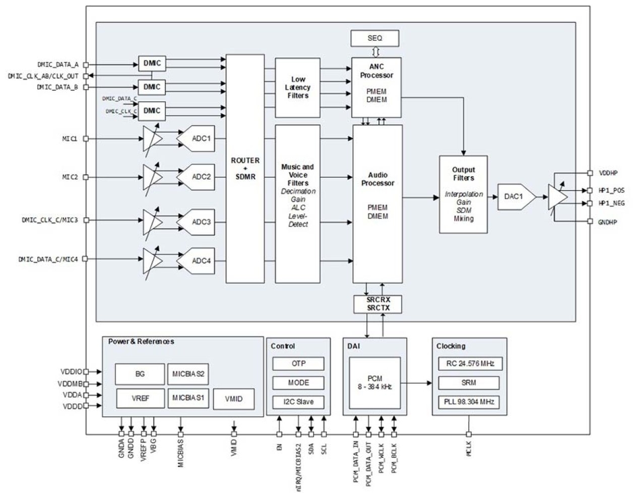 - 192kHz, low delay active noise canceller (ANC) DSP