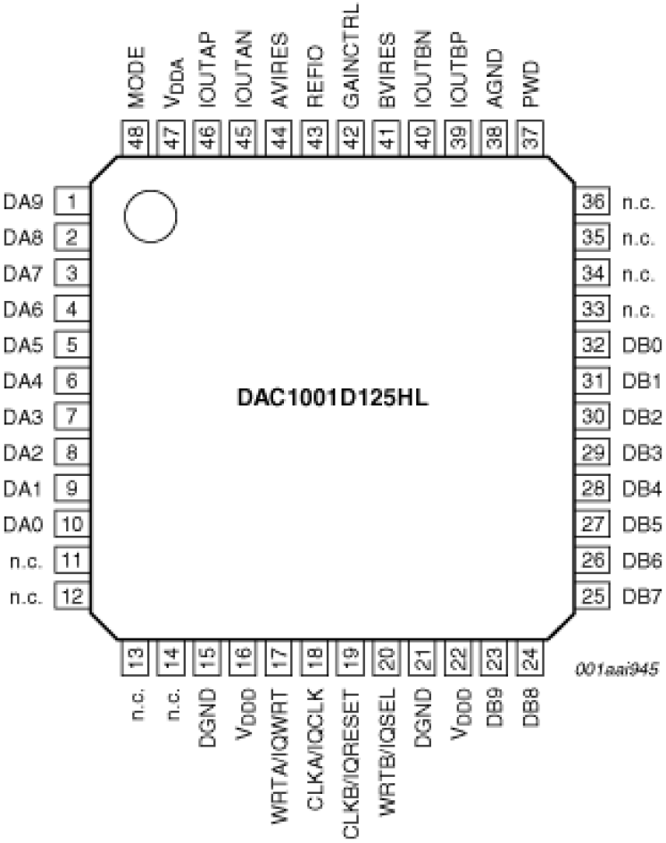 The DAC1001D125 is a dual-port, high-speed, 2-channel CMOS digital-to-analog converter (DAC), optimized for high dynamic performance with low power dissipation. Supporting an update rate of up to 125Msps, the DAC1001D125 is suitable for Direct IF applications.