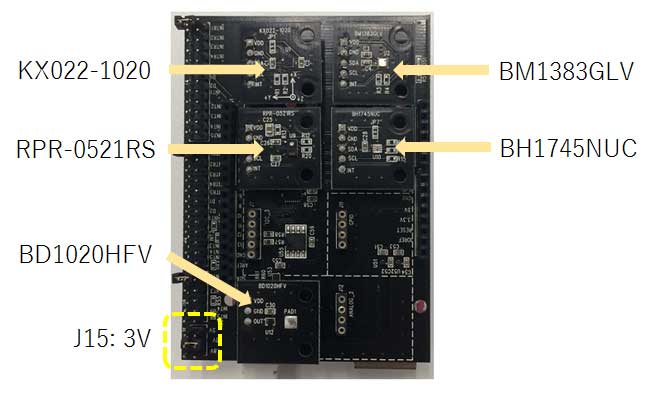 Connect five sensor modules to evaluation kits and set the J15 jumper to 3V.
