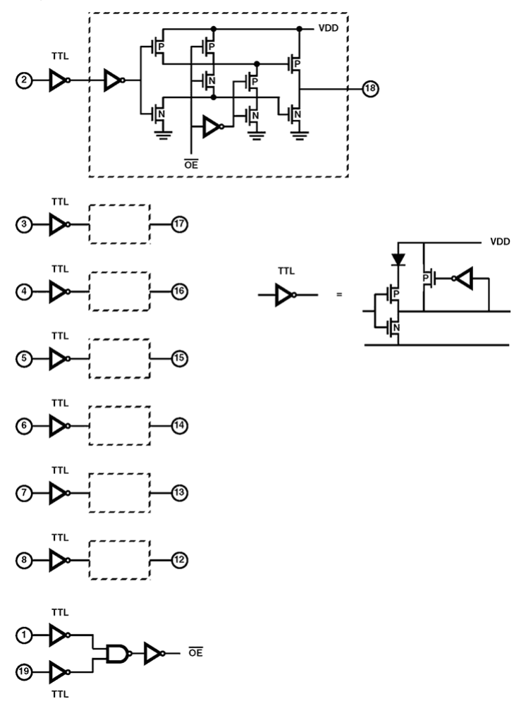 - Input current levels Ii ≤5µA at VOL, VOH