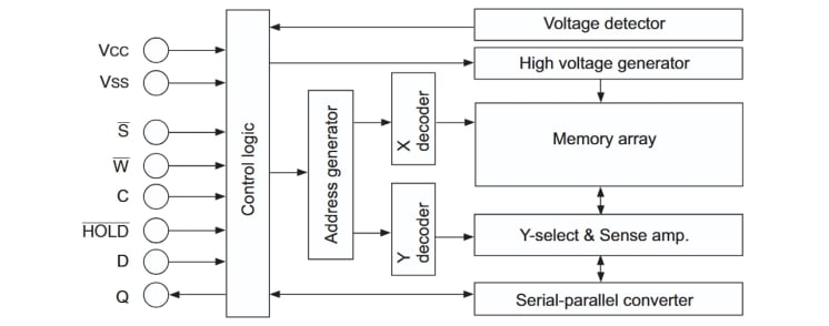 HN58X25128/HN58X25256 Series is the Serial Peripheral Interface compatible (SPI) EEPROM (Electrically Erasable and Programmable ROM). It realizes high-speed, low-power consumption, and a high level of reliability by employing advanced MONOS memory technology and the CMOS process and low voltage circuitry technology. It also has a 64-byte page programming function to make its write operation faster.