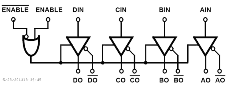 The Intersil HS-26C31RH, HS-26C31EH are quad differential line drivers designed for digital data transmission over balanced lines and meets the requirements of EIA standard RS-422. Radiation hardened CMOS processing assures low power consumption, High-Speed, and reliable operation in the most severe radiation environments. The HS-26C31RH, HS-26C31EH accept CMOS levels and converts them to RS-422 compatible outputs. These circuits uses special outputs that enable the drivers to power-down without loading down the bus. Enable and disable pins allow several devices to be connected to the same data source and addressed independently. Specifications for Rad Hard QML devices are controlled by the Defense Logistics Agency Land and Maritime (DLA). The SMD numbers listed here must be used when ordering. Detailed Electrical Specifications for these devices are contained in SMD 5962-96663.