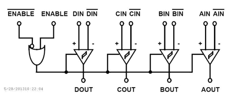 The Intersil HS-26C32RH, HS-26C32EH are differential line receivers designed for digital data transmission over balanced lines and meets the requirements of EIA Standard RS-422. Radiation hardened CMOS processing assures low power consumption, High-Speed, and reliable operation in the most severe radiation environments. The HS-26C32RH, HS-26C32EH have an input sensitivity typically of 200mV over the common mode input voltage range of ±7V. The receivers are also equipped with input fail safe circuitry, which causes the outputs to go to a logic “1” when the inputs are open. Enable and Disable functions are common to all four receivers. Specifications for Rad Hard QML devices are controlled by the Defense Logistics Agency Land and Maritime (DLA). The SMD numbers listed in the “Ordering Information” table must be used when ordering. Detailed Electrical Specifications for these devices are contained in SMD 5962-95689.