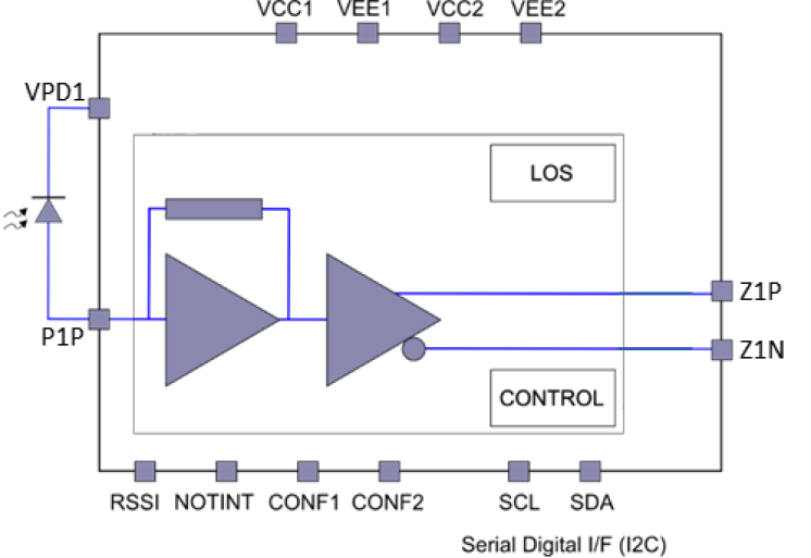 The HXR44100 single channel Transimpedance Linear Amplifier is a member of IDT’s family of Optical Receiver Transmitter Array (ORTA) products for PAM4 modulation format targeted at the parallel optical links market. Together with a PIN discrete detector, high-capacity, high-availability optical link can be designed for next-generation Ethernet and datacom applications. The 3.3V SiGe device integrates the linear transimpedance preamplifier, the linear post-amplifier, and a versatile CML output stage for four optical channels.