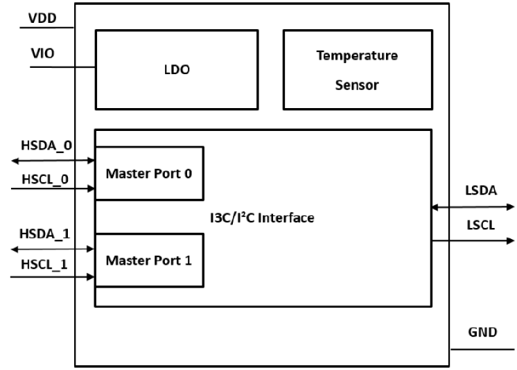 The IMX3102 is a 2:1 I³C basic bus multiplexer switch with an integrated temperature sensor for I³C and I²C applications. It is designed to be used for various motherboard applications.