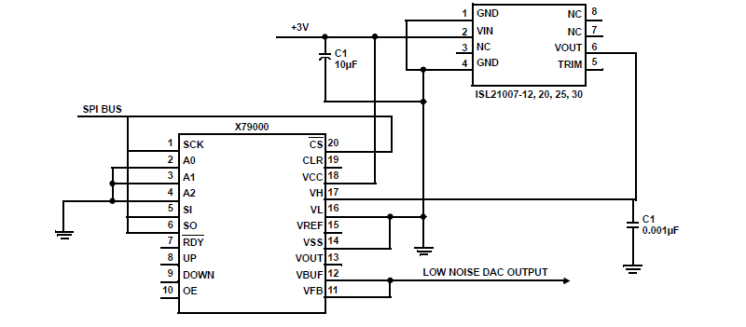 The ISL21007 FGA™ voltage references are extremely low power, high precision, and low noise voltage references fabricated on Intersil's proprietary Floating Gate Analog technology. The ISL21007 features very low noise (4. 5µVP-P for 0. 1Hz to 10Hz) and very low operating current (150µA, Max). In addition, the ISL21007 family features guaranteed initial accuracy as low as ±0. 5mV. This combination of high initial accuracy, low drift, and low output noise performance of the ISL21007 enables versatile high performance control and data acquisition applications with low power consumption.
