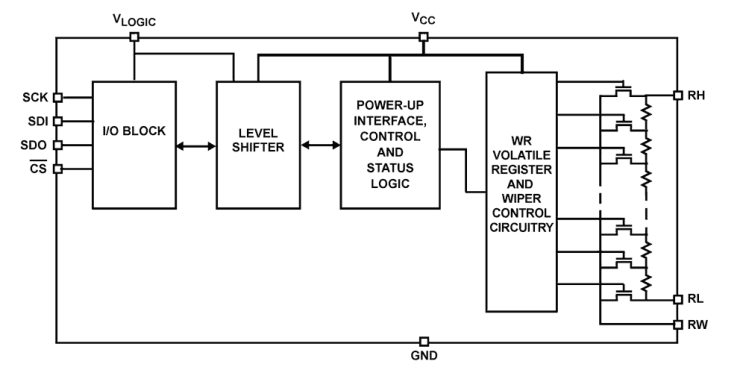 - Shutdown Mode - forces the DCP into an end-to-end open circuit and RW is shorted to RL internally