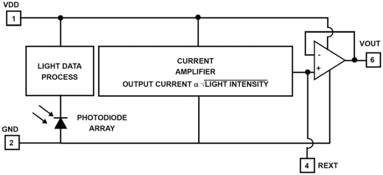 The ISL29112 is a low cost, light-to-voltage silicon optical sensor combining a photodiode array, a non-linear current amplifier, and a micropower op amp on a single monolithic IC. Similar to the human eye, the photodiode array has peak sensitivity at 550nm and spans the wavelength range of 400nm to 600nm, rejecting UV and IR light. The input luminance range is from 0.01 lux to 100 lux. The integrated non-linear current amplifier boosts and converts the photodiode signal into a square root output format, extending dynamic range while maintaining excellent sensitivity in dimly lit conditions. As such, the part is ideal for measuring incident daylight when mounted behind heavily smoked bezels used around displays or behind mirrors. The device consumes minimum power. A dark current compensation circuit minimizes the effect of temperature-dependent leakage currents in the absence of light, improving the light sensitivity at low lux levels. The output gain has been optimized to require a relatively low value external bias resistor that falls within recommended automotive EMI limits. The built-in 1μA op amp gives the ISL29112 an output voltage driving advantage for heavier loads that can drive an ADC directly. The ISL29112 is housed in an ultra-compact 2mm x 2.1mm ODFN plastic surface mount package. Operation is rated from -40 °C to +85 °C.