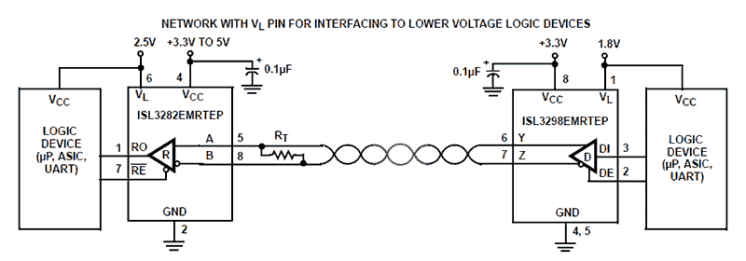 - Logic supply pin (VL) eases operation in mixed supply systems
