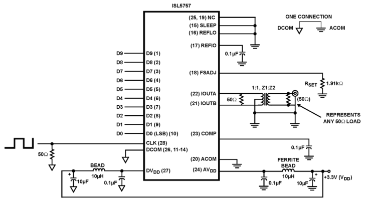 - Pin compatible, 3.3V, Lower Power Replacement For The AD9750 and HI5760