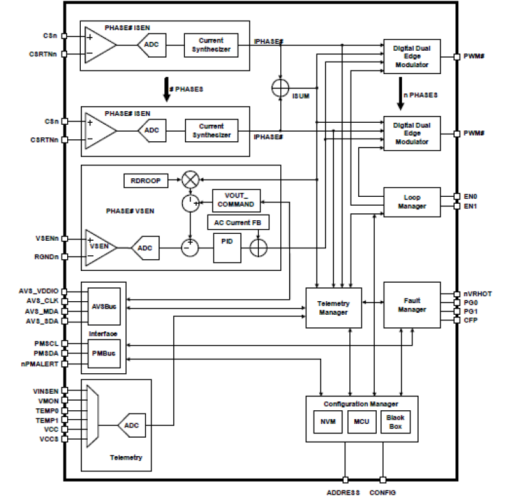 - Auto phase add/drop with PFM mode for excellent load vs efficiency profile