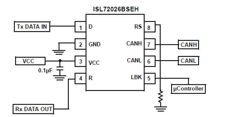 The ISL72026BSEH is a radiation tolerant 3. 3V CAN transceiver that is compatible with the ISO11898-2 standard for applications calling for Controller Area Network (CAN) serial communication in satellites and aerospace communications and telemetry data processing in harsh industrial environments. The transceiver can transmit and receive at bus speeds up to 5Mbps. It can drive a 40m cable at 1Mbps per the ISO11898-2 specification. It was designed to operate over a common-mode range of -7V to +12V with a maximum of 120 nodes. The device has three discrete selectable driver rise/fall time options, a listen mode feature and loopback test capability. Receiver (Rx) inputs feature a full fail-safe design, which ensures a logic high Rx output if the Rx inputs are floating, shorted, or terminated but undriven. The ISL72026BSEH is available in an 8 Ld hermetic ceramic flatpack and die form that operate across the temperature range of -55°C to +125°C. The logic inputs are tolerant with 5V systems. Other CAN transceivers available are the ISL72027BSEH and ISL72028BSEH.