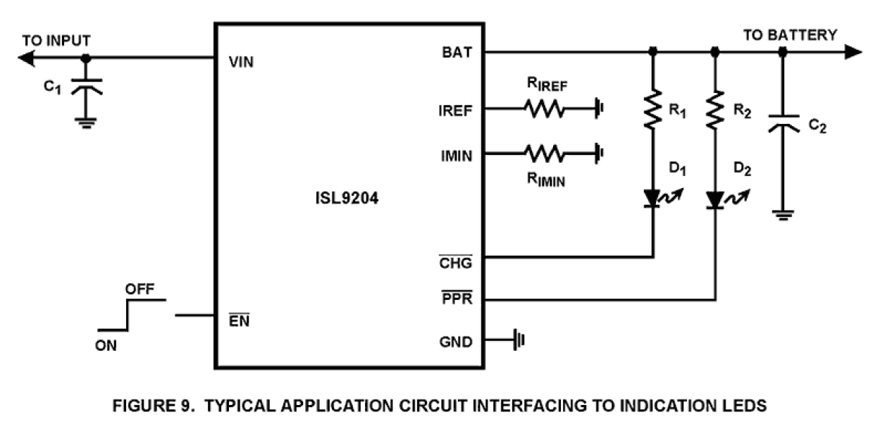 The ISL9204 is a cost-effective, fully integrated high input voltage single-cell Li-ion battery charger. This charger performs the CC/CV charge function required by Li-ion batteries. The charger accepts an input voltage up to 28V but is disabled when the input voltage exceeds the OVP threshold, minimum 10V, to prevent excessive power dissipation. The 28V rating eliminates the overvoltage protection circuit required in a low input voltage charger. The charge current and the end-of-charge (EOC) current are programmable with external resistors. When the battery voltage is lower than a typical value of 2. 8V, the charger preconditions the battery with typically 17% of the programmed charge current. When the charge current reduces to the programmable EOC current level during the CV charge phase, an EOC indication is provided by the CHG pin, which is an open-drain output. An internal thermal foldback function protects the charger from any thermal failure. Two indication pins (PPR and CHG) allow simple interface to a microprocessor or LEDs. When no adapter is attached or when disabled, the charger draws less than 1µA leakage current from the battery.