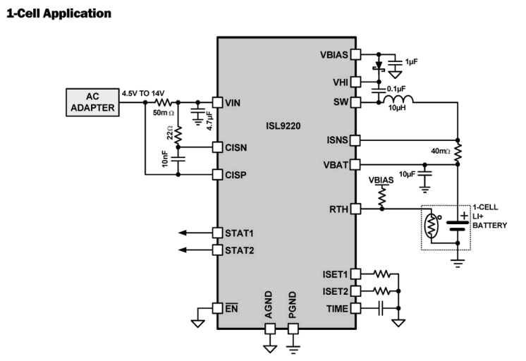 The ISL9220, ISL9220A is a cost-effective and versatile battery charger for 1-cell and 2-cell Li-ion and Li-Polymer based portable applications. The device features synchronous PWM technology, maximizing power efficiency, thus minimizing charge time and heat. The 1. 2MHz switching frequency allows use of small external inductors and capacitors. A simple charge current programming method is provided. External resistors program the fast charge and end-of-charge currents. The two status outputs can be used to drive LEDs, or can be connected to host processor. A programmable charge timer provides the ability to detect defective batteries, and provides a secondary method of detecting charge termination. A thermistor interface is provided for battery presence detection, and for temperature qualified charging conditions. Additional features include preconditioning of an over-discharged battery, automatic recharge, and thermally enhanced QFN package.