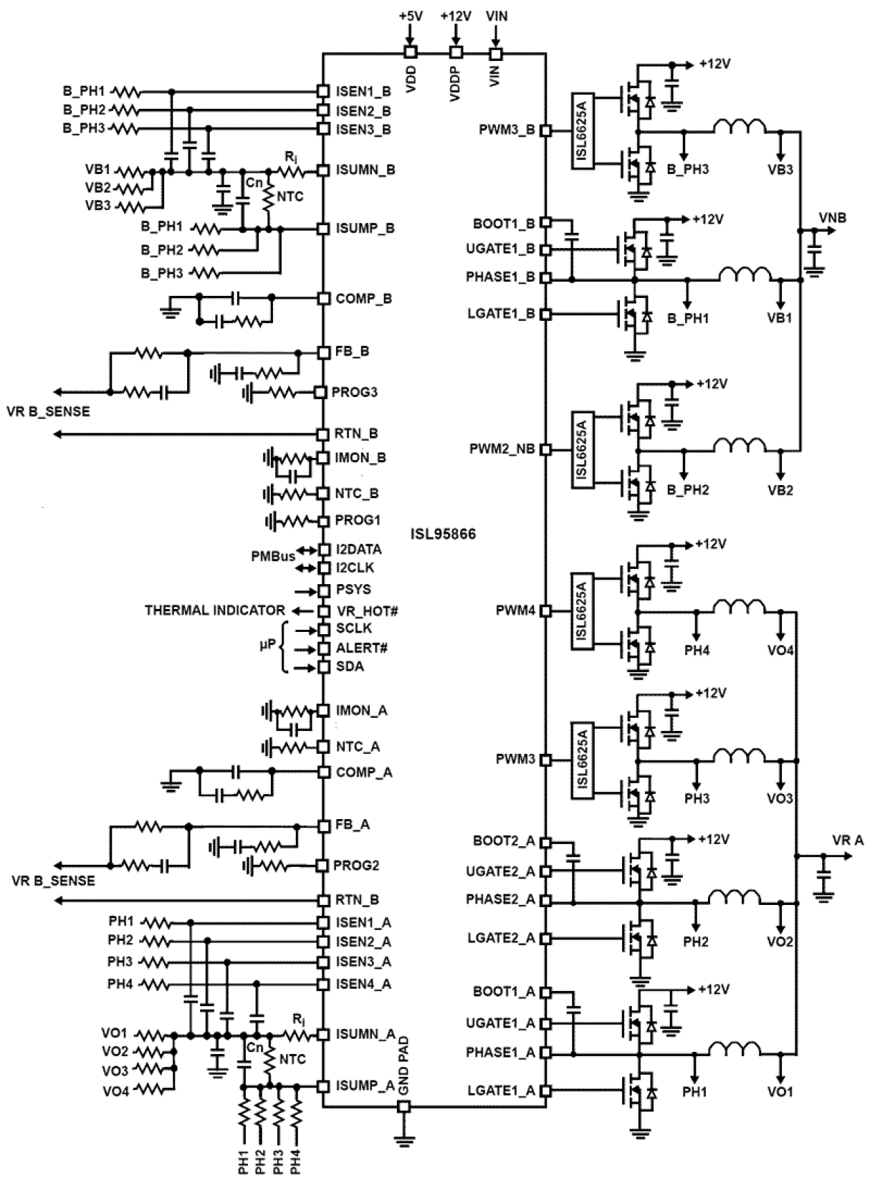 - Voltage regulator A: 4-, 3-, 2-, or 1-phase designs with two +12V integrated gate drivers