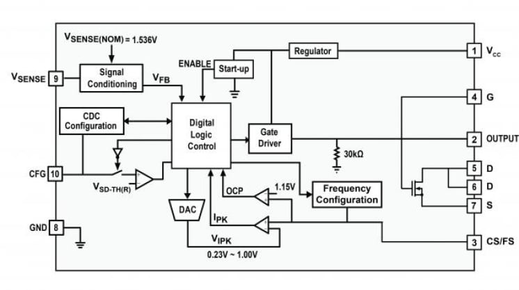 | Control Mode | Primary-Side Regulation Peak Current Mode DCM |