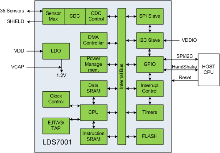 - Supports IDT's proprietary true single layer sensor with up to 35 touch sensor channels