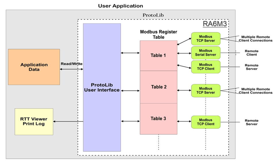 The protocol library stack designed and developed by GCT Lab for Renesas RA series MCUs supports Modbus, IEC 60870-5-101 and IEC 60870-5-104 communication standards. The optimized embedded Modbus TCP/IP and RTU stack enables communication with multiple clients and servers using ProtoKit application software developed and ported onto Renesas RA6M3 MCU by GCT Labs. It is easily ported to other RA microcontrollers with Ethernet functionality.