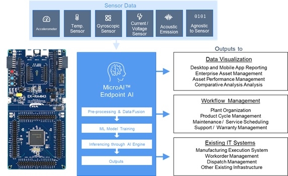 MicroAI AtomML™ 可在单个设备或装置搭载大型基础设施智能。 MicroAI AtomML 能直接部署到瑞萨的 RA 资产。 MicroAI AtomML 还可直接在 MCU 上训练机器学习模型。 此外,MicroAI 在 MCU 环境中进行训练和运行,减少了离开装置所需的数据量,提供了更有效的方法来执行资产健康分析,同时增强了安全监督。