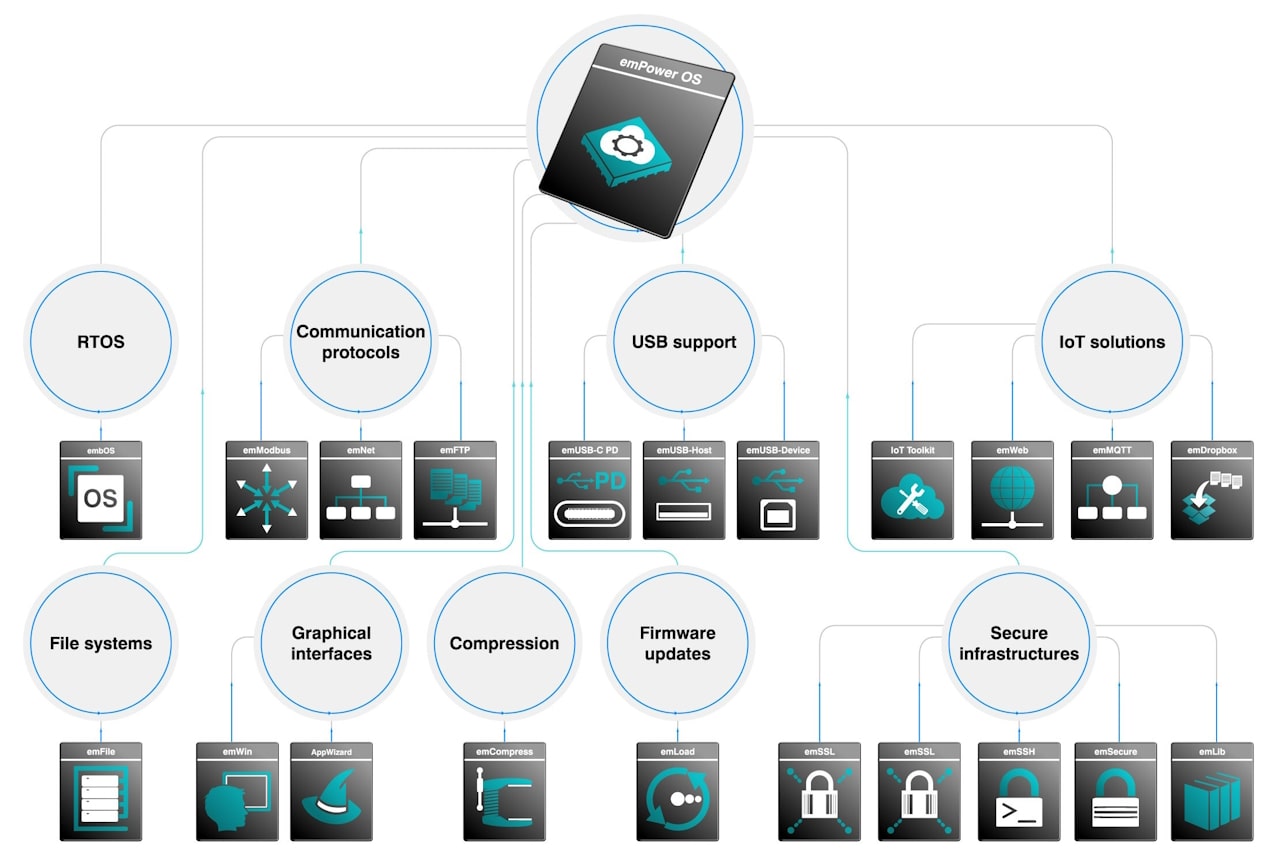 SEGGER's emPower OS is a high-performance software platform and complete operating system designed for embedded systems and IoT devices. It includes essential components such as a real-time operating system (RTOS), file system, user interface, web server, connectivity libraries, and robust security protocols. This all-in-one solution supports any CPU, manufacturer, or cloud provider. It is compatible with Renesas’s RA, RL78 and RH850 MCUs, and RZ MPUs and RISC-V MCUs/MPUs.