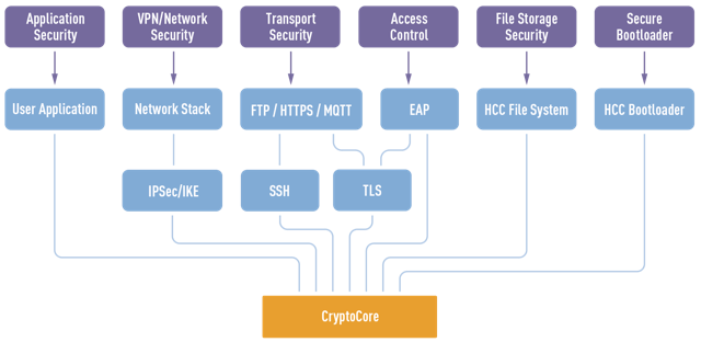 CryptoCore for Renesas RA MCUs is available as CryptoCore Base and CryptoCore Pro and is included with higher-level security packages such as SNMP, TLS/DTLS, and SSH. They can also be purchased independently.