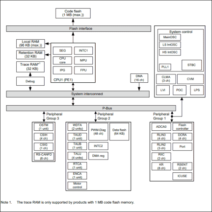 RH850/F1KM-S1 是 RH850/F1x 系列中的一组单芯片微控制器,专为汽车电气车身应用而设计。它实现了低功耗,内部闪存范围为 512KB 至 1MB,封装范围为 48 至 100 引脚。此外,还增加了 CAN FD 接口,CPU 工作频率高达 120MHz。