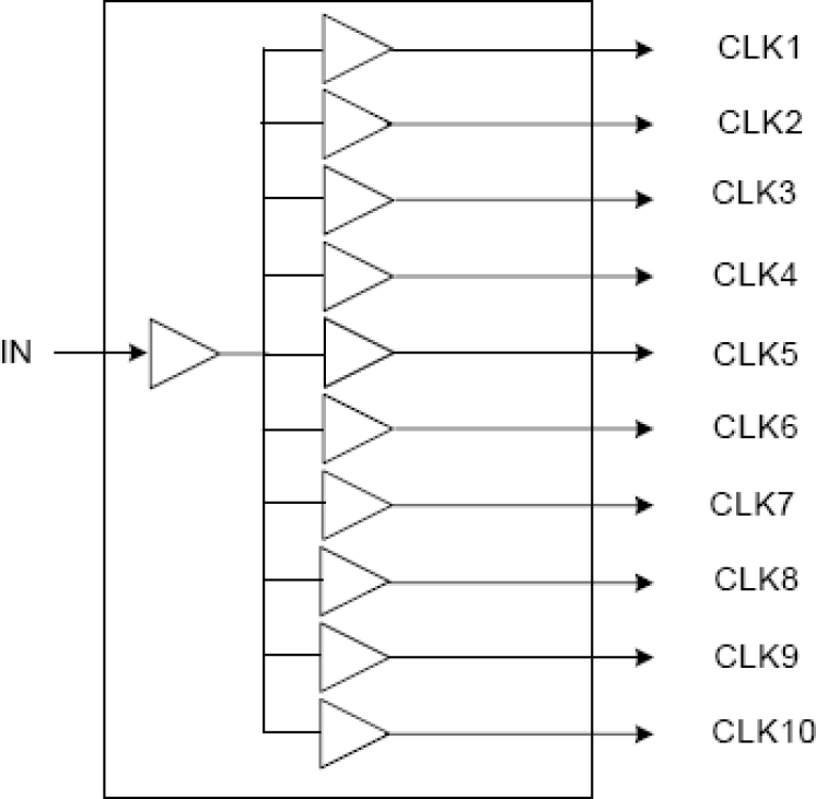 The MK3807-01 is a low skew 3.3V, 1 to 10 fanout buffer. The large fanout from a single input line reduces loading on the input clock. The TTL level outputs reduce noise levels on the part. Typical applications are clock and signal distribution.