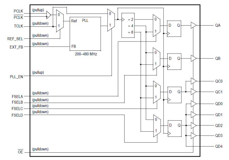 - Configurable outputs: divide-by-2, 4 and 8 of VCO frequency
