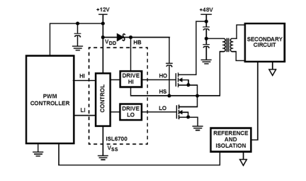 The ISL6700 is an 80V/1.25A peak, medium frequency, low cost, half-bridge driver IC available in 8-lead SOIC and 12-lead QFN plastic packages. The low-side and high-side gate drivers are independently controlled and matched to 25ns. This gives the user maximum flexibility in dead-time selection and driver protocol. Undervoltage protection on both the low-side and high-side supplies force the outputs low. Non-latching, level-shift translation is used to control the upper drive circuit. Unlike some competitors, the high-side output returns to its correct state after a momentary undervoltage of the high-side supply.