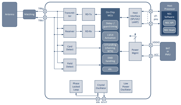 - 支持通过比传统 NFC 阅读器小 4-5 倍的天线进行操作