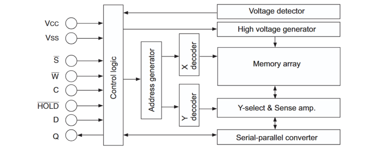 The R1EX25002A is a Serial Peripheral Interface (SPI) compatible EEPROM (Electrically Erasable and Programmable ROM). It realizes high-speed, low-power consumption, and a high level of reliability by employing advanced MONOS memory technology and the CMOS process, and low-voltage circuitry technology. It also has a 16-byte page programming function to make its write operation faster.